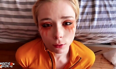 A girl with a teenie face has a hatch full of sperm