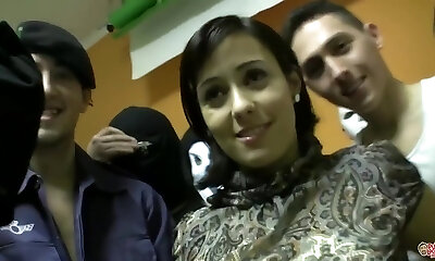 Hot redhead German assistant gets a outdoor gangbang