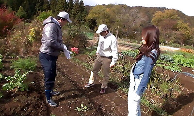 Promiscuous Japanese brunette wails while being fucked by an older dude