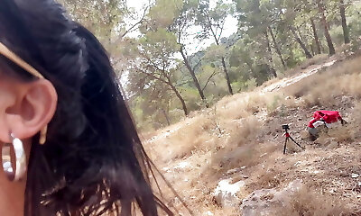 Pawg beauty with glasses rides a weenie naked in the woods