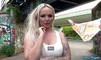 Tattooed blonde slut Louise Lee fucked in the public place