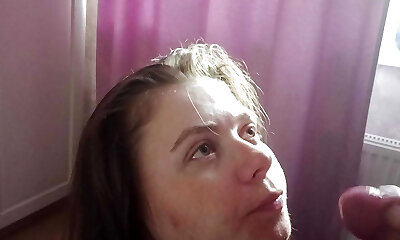 Three big cum-shots in my mouth and face, I love milk