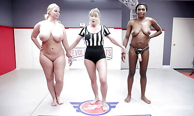 Lesbian wrestling ebony wrestles against BBW sandy-haired