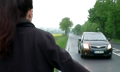 While driving she wants to play a muddy game, risky public outdoor sucking and fucking Girlfriend