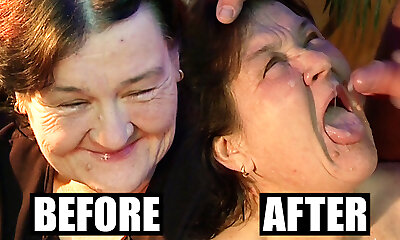 Very old grandmother didn't know cum on her face