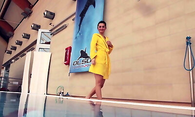 Russian ash-blonde perfection swimming in the pool
