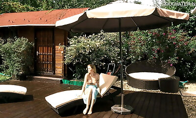 Bathing a cheery housewife Lukerya in a mini pool naked under bright sunlight