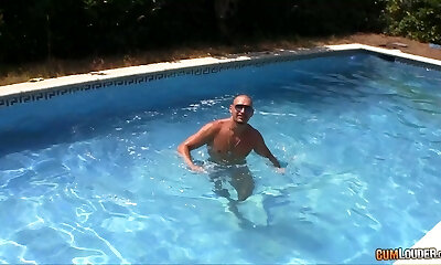 A Slim Older Gal Gets Some Trouser Snake Out By The Pool